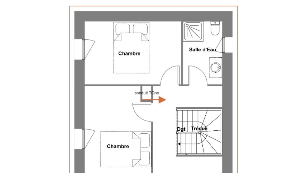 C'est une maison de 2 niveaux. Elle est composée de trois chambres, d'une cuisine et de deux salles de bains. Cette maison est neuve.