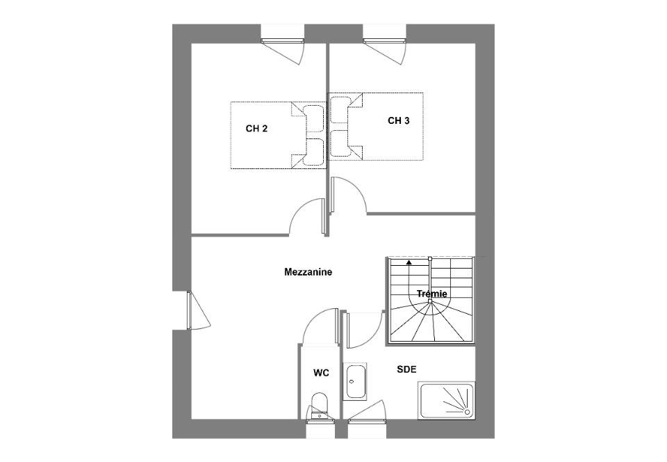 C'est une maison de 2 niveaux. Son intérieur compte trois chambres, une cuisine et une salle de bains. La maison est neuve.