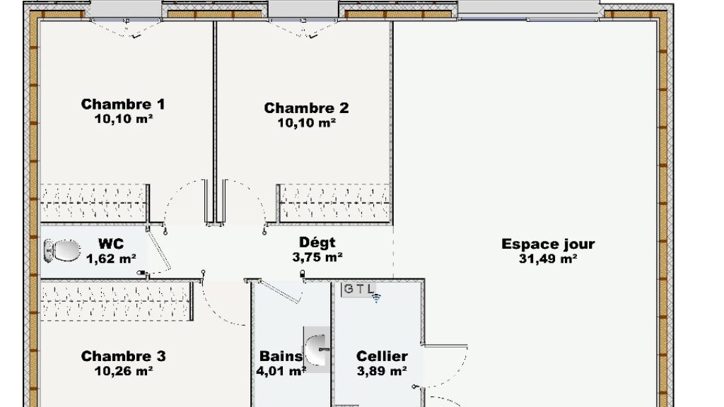 - Surface maison : 75 m²