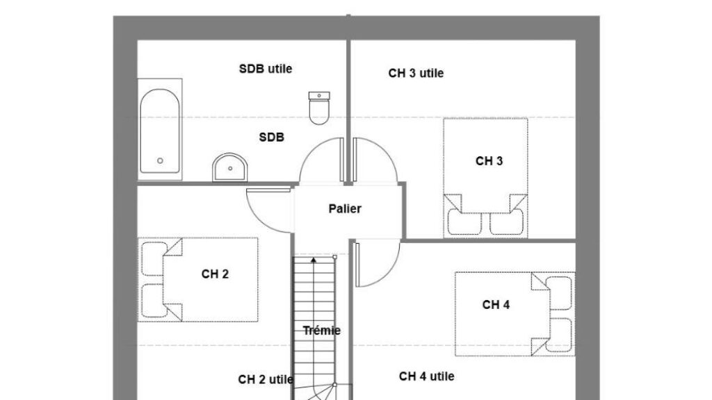C'est une maison de 2 niveaux. Elle compte quatre chambres, une cuisine et une salle de bains. La maison est neuve.