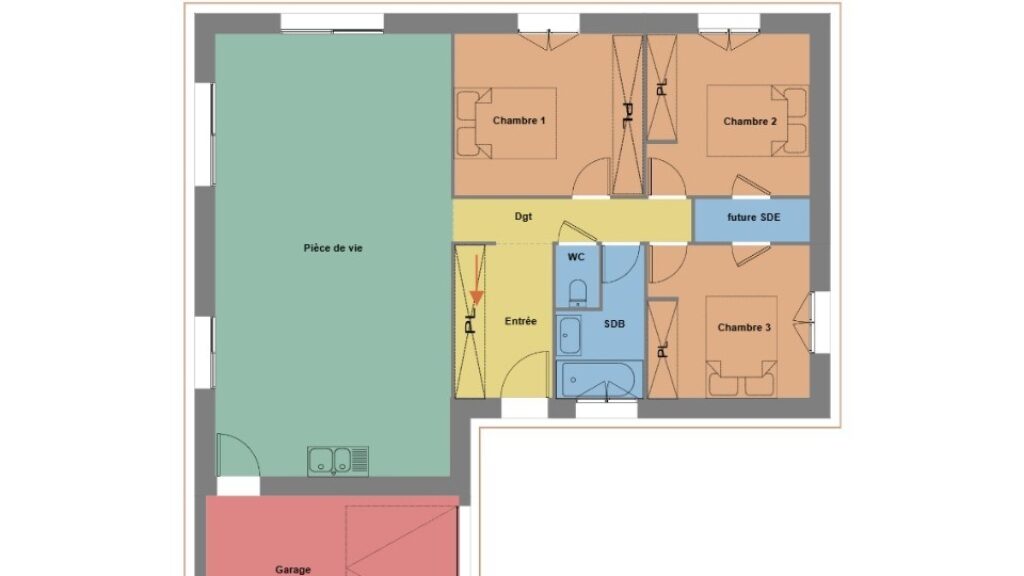Maison à construire de 86m² (3 chambres) sur un terrain de 490m² à Domloup (35410)