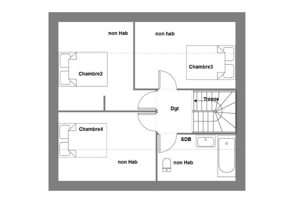 Cette maison comporte 2 niveaux. Son intérieur se divise en quatre chambres, une cuisine et deux salles de bains. Cette maison est neuve.
