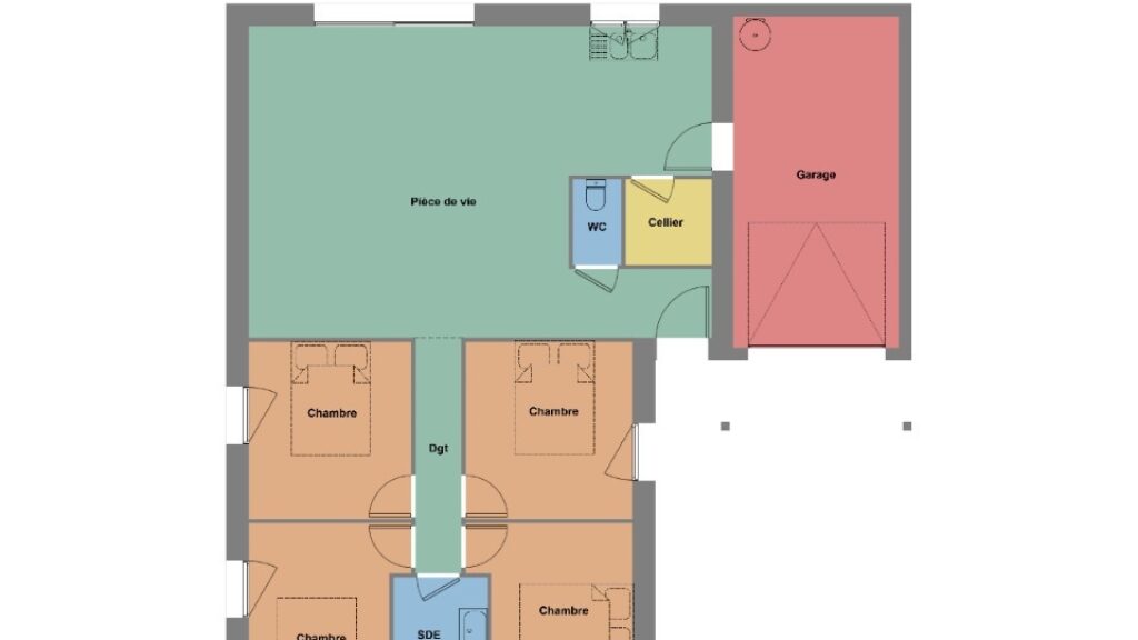 À vendre à 10 km de la Manche et à quelques kilomètres de Saint-Brieuc, à Pléneuf-Val-André (22370), Maisons de l'Avenir Saint-Brieuc vous propose cette maison de 5 pièces de plain-pied de 85 m². Son intérieur inclut quatre chambres, une cuisine et une salle de bains.