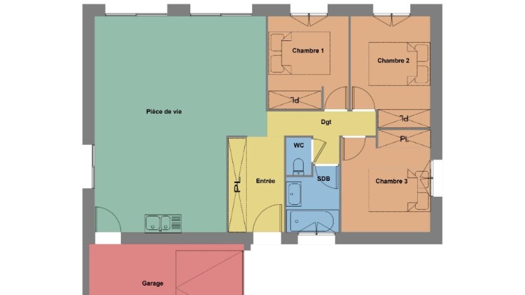 Maison à construire de 73m² (3 chambres) sur un terrain de 307m² à Plestan (22640)