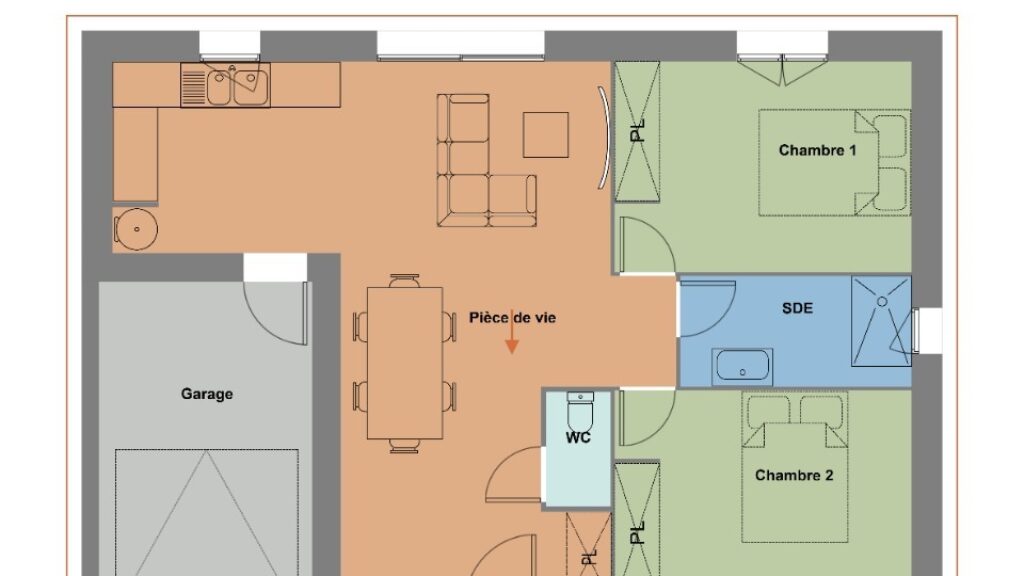 En vente à 4 km de la Manche, à Ploubazlanec (22620), Maisons de l'Avenir Saint-Brieuc vous propose cette maison de 3 pièces de plain-pied de 59 m² et de 300 m² de terrain.