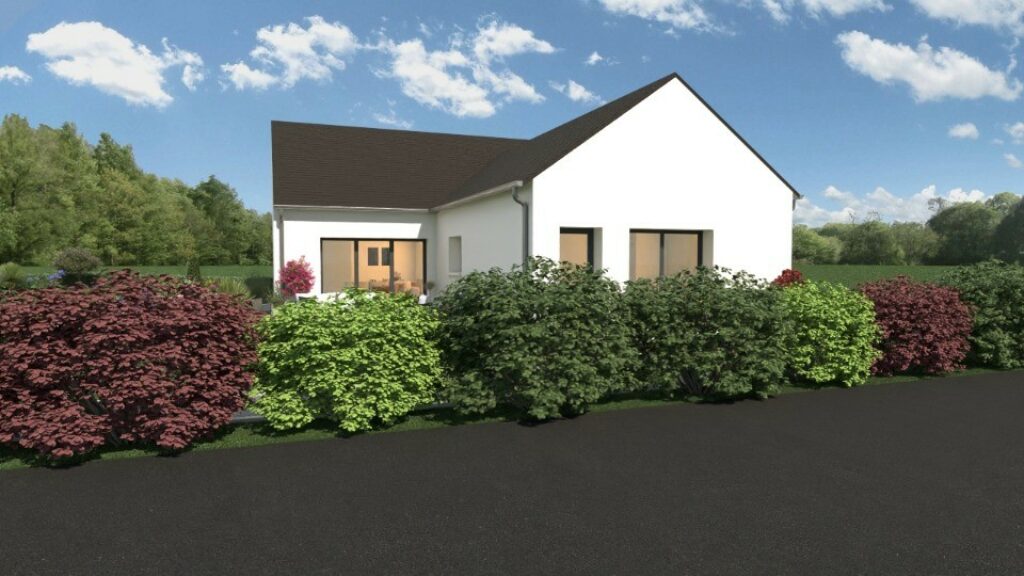 Conçue de plain-pied, elle inclut trois chambres, une cuisine et deux salles de bains.