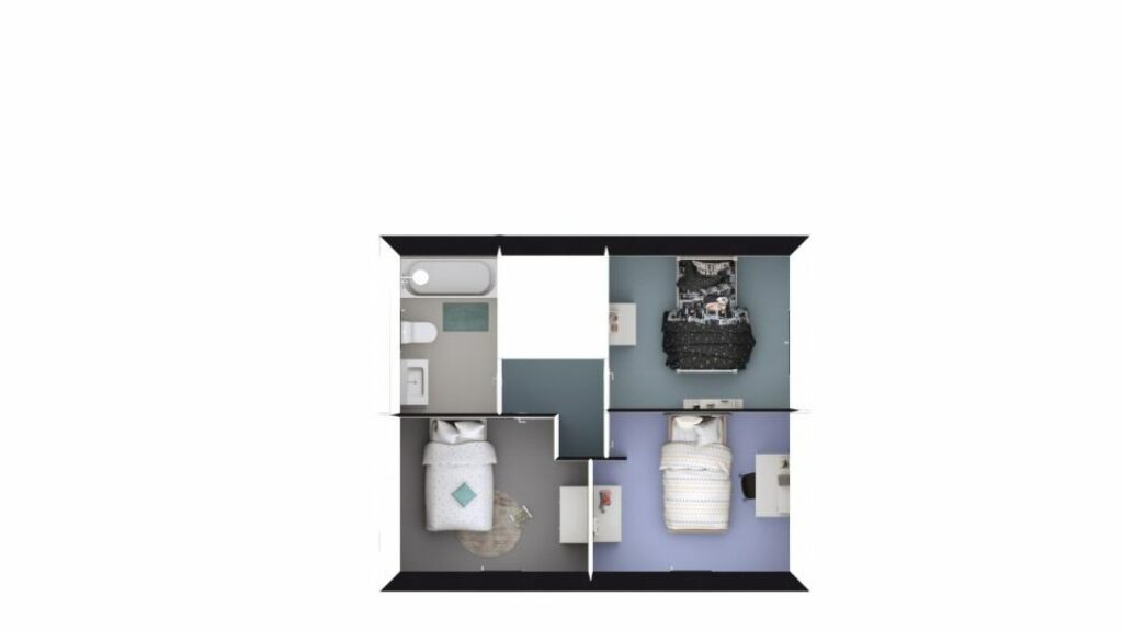 C'est une maison de 2 niveaux. Elle propose quatre chambres, une cuisine et deux salles de bains.