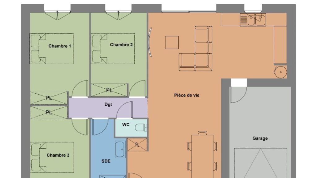 Maison à construire de 78m² (3 chambres) sur un terrain de 407m² à Riantec (56670)