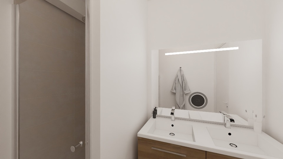 Conçue de plain-pied, elle dispose de trois chambres, d'une cuisine et de deux salles de bains.