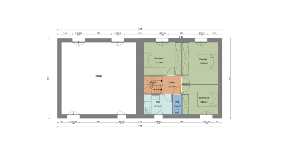 C'est une maison de 2 niveaux. Elle comporte trois chambres, une cuisine et une salle de bains. Cette maison est neuve.