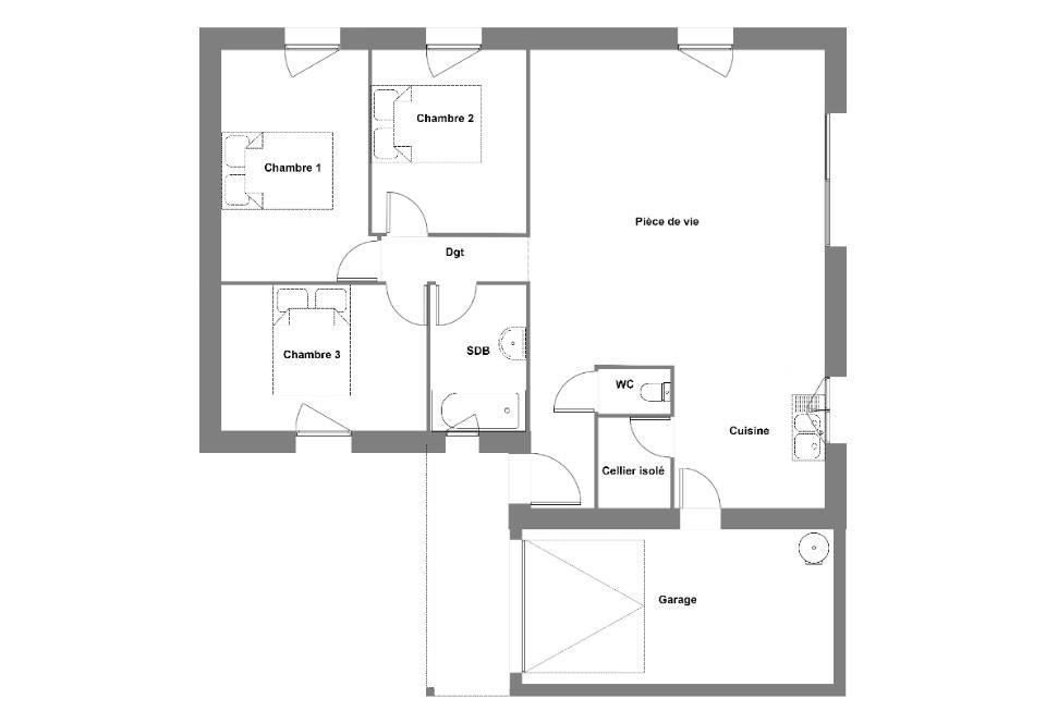 Maison à construire de 79m² (3 chambres) sur un terrain de 697m² à Santec (29250)