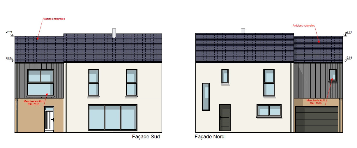 - • Fourniture et pose d’un bardage zinc couleur Quartz en façade avant et façade arrière de la surélévation