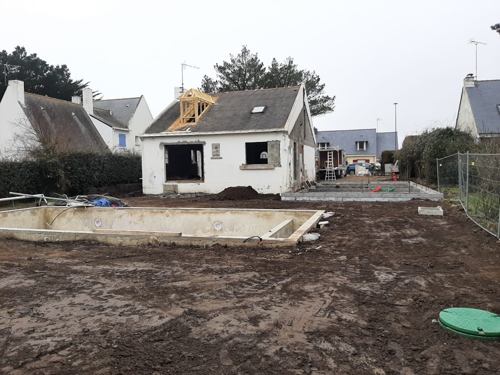 Chaque projet d’agrandissement et de rénovation d’une maison est un chantier unique, avec des demandes différentes de nos clients, des conditions d’accès au site parfois complexes (habitations proches, jardin aménagé, maison occupée pendant les travaux…). Pour ce chantier à Batz sur mer, voici quelques-unes des spécificités de ce chantier :